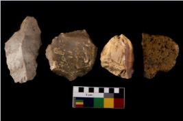 | Description / विवरण | There are n 4 of utilized worked cores. There are multidirectional irregular dominant scar pattern. Some are tapering at one end. They have sharp edges. |