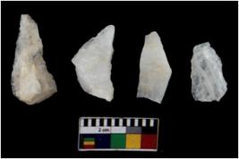 | Description / विवरण | There are n 4 flake cores. All of them are fully fluted flake cores without any trace of crested ridge flakes. They are tapering at one end. Some have flat base and few have round edges. |