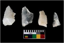 | Description / विवरण | There are n 4 flake cores. All of them are fully fluted flake cores without any trace of crested ridge flakes. Some have sharp edges whereas some have blunted edges. |