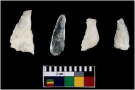 | Description / विवरण | There are n 4 flake cores. All of them are fully fluted flake cores without any trace of crested ridge flakes. Some are tapering at one end and few have flat base. |