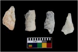 | Description / विवरण | There are n 4 flake cores. All of them are fully fluted flake cores without any trace of crested ridge flakes. They are tapering at one end. Some have flat base and few have round edges. |