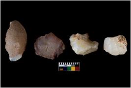 | Description / विवरण | There are n 4 of utilized worked cores. They show multidirectional irregular dominant scar pattern. One of them is tapering at one end. |