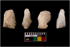 | Description / विवरण | There are n 4 flake cores. All of them are fully fluted flake cores without any trace of crested ridge flakes. Some are tapering at one end. Some have flat base and few have sharp edges. |