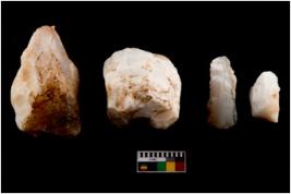 | Description / विवरण | There are n 04 worked utilised cores; all are fluted, Two of them are tapering at one end. All are having blunt edges. One of them shows impurities. |