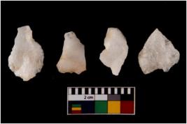 | Description / विवरण | There are n 4 flake cores. All of them are fully fluted flake cores without any trace of crested ridge flakes. Some have flat base. Some have sharp edges while some have blunted edges. |