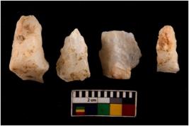 | Description / विवरण | There are n 4 flake cores. All of them are fully fluted flake cores without any trace of crested ridge flakes. Some are tapering at one end. Some have flat base and few have sharp edges. |