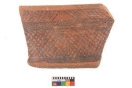 | Description / विवरण | Specimen of potsherd with decorative geometric criss-cross pattern , Type Black on Red ware . |