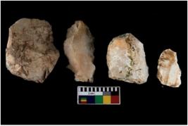 | Description / विवरण | There are n 4 of utilized worked cores.They show multi-directional irregular scar pattern. Some are tapering on one end. |