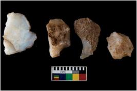 | Description / विवरण | There are n 4 of utilized worked cores. They show multidirectional irregular scar pattern. Three are tapering on one end. |