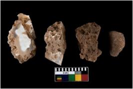 | Description / विवरण | There are n 4 of utilized worked cores. They show multidirectional irregular dominant scar pattern and have sharp edges. Three are tapering on one end. |
