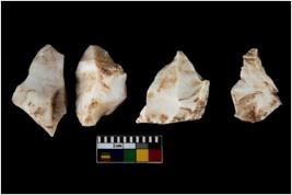 | Description / विवरण | There are n 4 of utilized worked cores. They show multidirectional irregular dominant scar pattern. All are tapering on one end and two have flat base. |