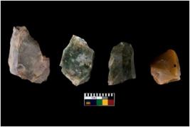 | Description / विवरण | There are n 4 of utilized worked cores. They show multidirectional irregular dominant scar pattern. One of them is tapering at one end. |