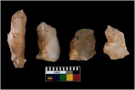 | Description / विवरण | There are n 4 of utilized worked cores. They show multidirectional irregular dominant scar pattern. Three are tapering on one end and three have flat base. |