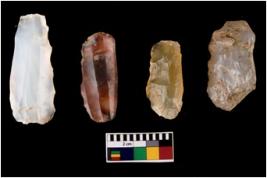 | Description / विवरण | There are n 04 worked cores; All are fully fluted and shows crested ridge flakes. Three of them have impurities hence colour variation. |