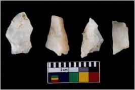 | Description / विवरण | There are n 4 flake cores. All of them are fully fluted flake cores without any trace of crested ridge flakes. Some are tapering at one end. Some have flat base and few have sharp edges. |