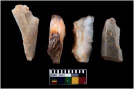 | Description / विवरण | There are n 4 of utilized worked cores. They show multidirectional irregular dominant scar pattern. All are tapering on one end and are elongated in shape. |