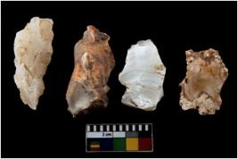 | Description / विवरण | There are n 4 of utilized worked cores. They show multidirectional irregular scar pattern. Three are tapering on one end. |