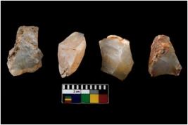 | Description / विवरण | There are n 4 of utilized worked cores. They show multidirectional irregular dominant scar pattern and two have flat base. |