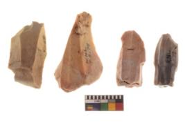 | Description / विवरण | There are n 4 cores. All of them are fully fluted flake cores without any trace of crested ridge flakes. Some are tapering at one end and some have sharp edges. |