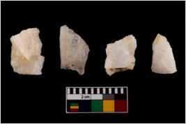 | Description / विवरण | There are n 4 flake cores. All of them are fully fluted flake cores without any trace of crested ridge flakes. Some are tapering at one end. Some have flat base and some have blunted edges. |
