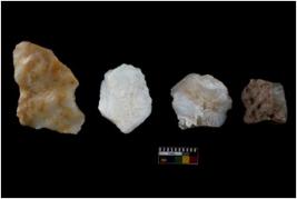 | Description / विवरण | There are n 4 of utilized worked cores. They show multidirectional irregular dominant scar pattern. One of them is tapering at one end. |