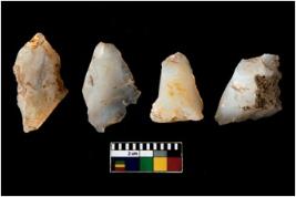 | Description / विवरण | There are n 4 of utilized worked cores. They show multidirectional irregular dominant scar pattern. Three are tapering on one end and two have flat base. |