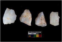 | Description / विवरण | There are n 4 of utilized worked cores. They show multidirectional irregular dominant scar pattern. One of them is tapering at one end. |