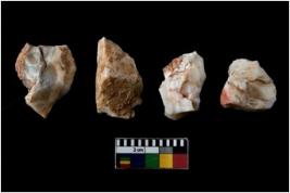 | Description / विवरण | There are n 4 of utilized worked cores. They show multidirectional irregular scar pattern. Two are tapering on one end. |