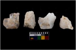 | Description / विवरण | There are n 4 flake cores. All of them are fully fluted flake cores without any trace of crested ridge flakes. Some are tapering at one end and few have round edges. |