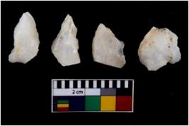 | Description / विवरण | There are n 4 flake cores. All of them are fully fluted flake cores without any trace of crested ridge flakes. Some are tapering at one end. Some have flat base and few have sharp edges. |
