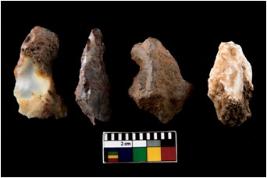 | Description / विवरण | There are n 4 of utilized worked cores. They show multidirectional irregular dominant scar pattern and are tapering on one end. |