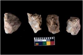 | Description / विवरण | There are n 4 of utilized worked cores. They show multidirectional irregular dominant scar pattern. Two have broken tip. |