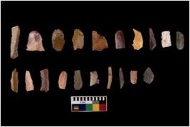 | Description / विवरण | There are n 20 blades; of which few is debitage. Some of them have slight retouchings along the edges. They have single to double flake scars along their surface and some of them have parallel scars along the edges. |