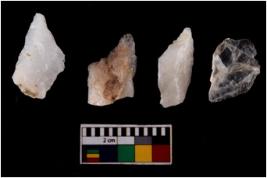 | Description / विवरण | There are n 4 flake cores. All of them are fully fluted flake cores without any trace of crested ridge flakes. Few are tapering at one end. Some have flat base and some have blunted edges. |