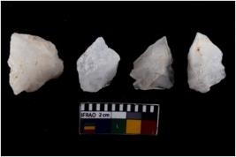 | Description / विवरण | There are n 4 flake cores. All of them are fully fluted flake cores without any trace of crested ridge flakes. Some are tapering at one end and few have round edges. |