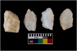 | Description / विवरण | There are n 4 flake cores. All of them are fully fluted flake cores without any trace of crested ridge flakes. Some are tapering at one end and some have sharp edges. |