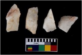 | Description / विवरण | There are n 4 flake cores. All of them are fully fluted flake cores without any trace of crested ridge flakes. Some are tapering at one end and some have sharp edges. |