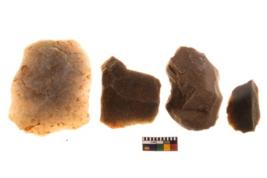 | Description / विवरण | There are n 04 of utilized worked flakes. They show multi-directional irregular scar pattern. One is tapering on one end. |