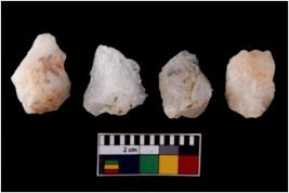 | Description / विवरण | There are n 4 flake cores. All of them are fully fluted flake cores without any trace of crested ridge flakes. Some have sharp edges and some have round edges. |