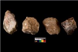 | Description / विवरण | There are n 4 of utilized worked cores. Some have flat bases. They have sharp edges and show dominant irregular scar pattern. |