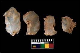 | Description / विवरण | There are n 4 of utilized worked cores.They show multidirectional irregular scar pattern. Some are tapering at one end and most of them have sharp edges. |