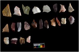 | Description / विवरण | There are n 23 flakes; some are sharp with sides retouched. Some of the flakes shows crescent shape whereas some of them represent Levallois type of flakes and some of them have tanged point. Few smaller one looks like scrapers. |