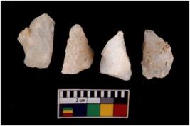 | Description / विवरण | There are n 4 flake cores. All of them are fully fluted flake cores without any trace of crested ridge flakes. Some are tapering at one end and some have sharp edges. |