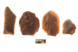 | Description / विवरण | There are n 04 of utilized worked flakes. They show multi-directional irregular scar pattern. One is tapering on one end. |