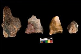 | Description / विवरण | There are n 4 of utilized worked cores. There are multidirectional irregular dominant scar pattern on both dorsal and ventral side. They have sharp edges and some are tapering at one end. |