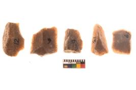 | Description / विवरण | There are n 04 of utilized worked flakes. They show multi-directional irregular scar pattern. One is tapering on one end. |