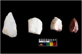 | Description / विवरण | There are n 04 cores; three of them have flat base. Three ao them are tapering at one end. One of the core has a tanged tip due to retouching. |