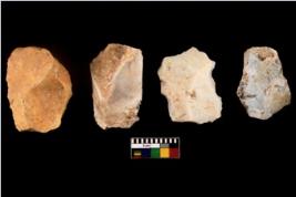 | Description / विवरण | There are n 4 of utilized worked cores. They have flat base and sharp edges. They show irregular dominant scar pattern. |