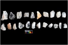 | Description / विवरण | There are n 22 flakes;they include three triangular shaped and three pen points. One of the flake has single ridge running parallel to its length. Three of them are rosy quartz. |