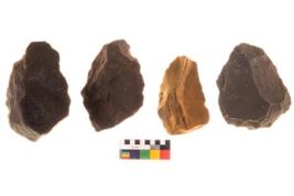 | Description / विवरण | There are n 04 handaxes; all of them are tapering at one end. All are having sharp edges. They show multi directional scar pattern |